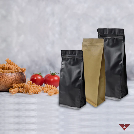 Block Bottom Pouches with Reseal Zip and Valve