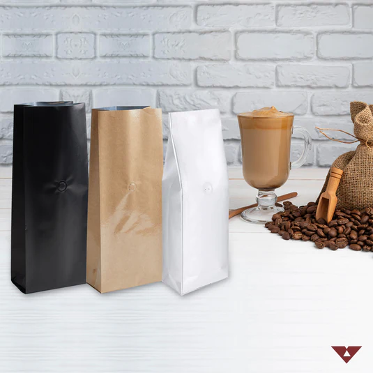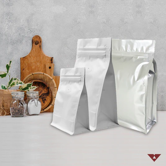 Block Bottom Pouches with Reseal Zip and Valve